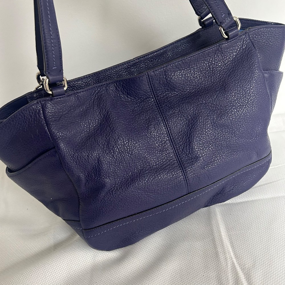 Coach Lg Park Carrie Blue Pebble Leather Purse