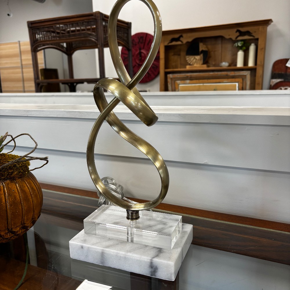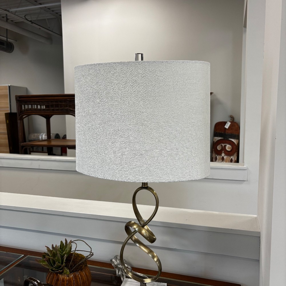 Twisted Polished Brass w/ Stone Base Lamp w/ Shade