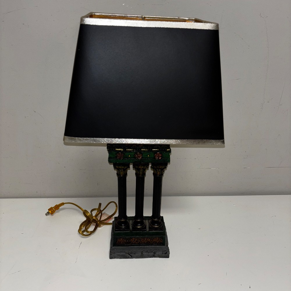 Black Resin Triple Colum Lamp w/ Black Shade